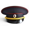 Фуражка для офицеров полиции иссиня-черного цвета с алым кантом. Черный плотный козырек, пуговицы для крепления филигранного шнура. Шнур и кокарда приобретаются отдельно.