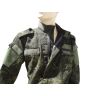 Куртка с застежкой на молнию с ветрозащитным клапаном и воротником-стойкой. На рукавах – объемные накладные карманы с клапанами, застегивающимися на 2 потайные кнопки. Локтевая зона усилена дополнительными накладками. На груди – два накладных кармана с клапанами, застегивающимися на потайные кнопки. Низрукава регулируется патой на текстильной застежке.