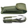 Отличный аксессуар для походов, пикников, выживания, охоты или рыбалки, сочетающий в себе 7 предметов - нож, ложку, вилку, шило, штопор, открывашки для бутылок и консерв.